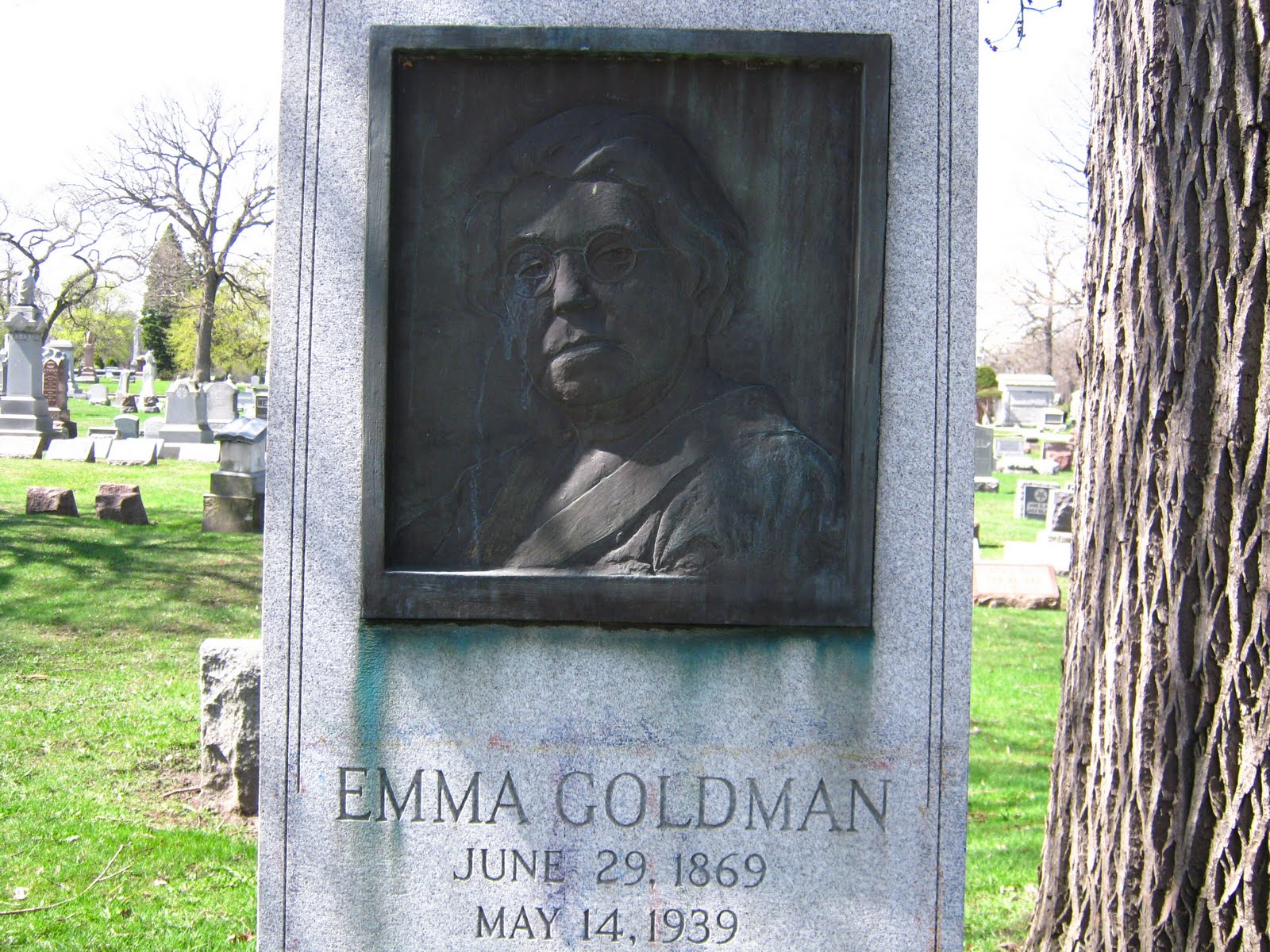 Emma Goldman’s grave [http://en.wikipedia.org/wiki/Emma_goldman ] and Voltairine de Cleyre’s grave [http://en.wikipedia.org/wiki/Voltairine_de_Cleyre ] are between these historical graves.