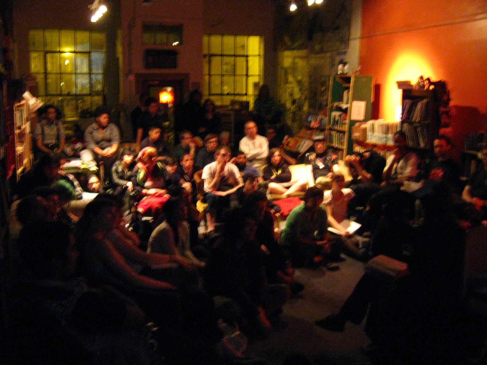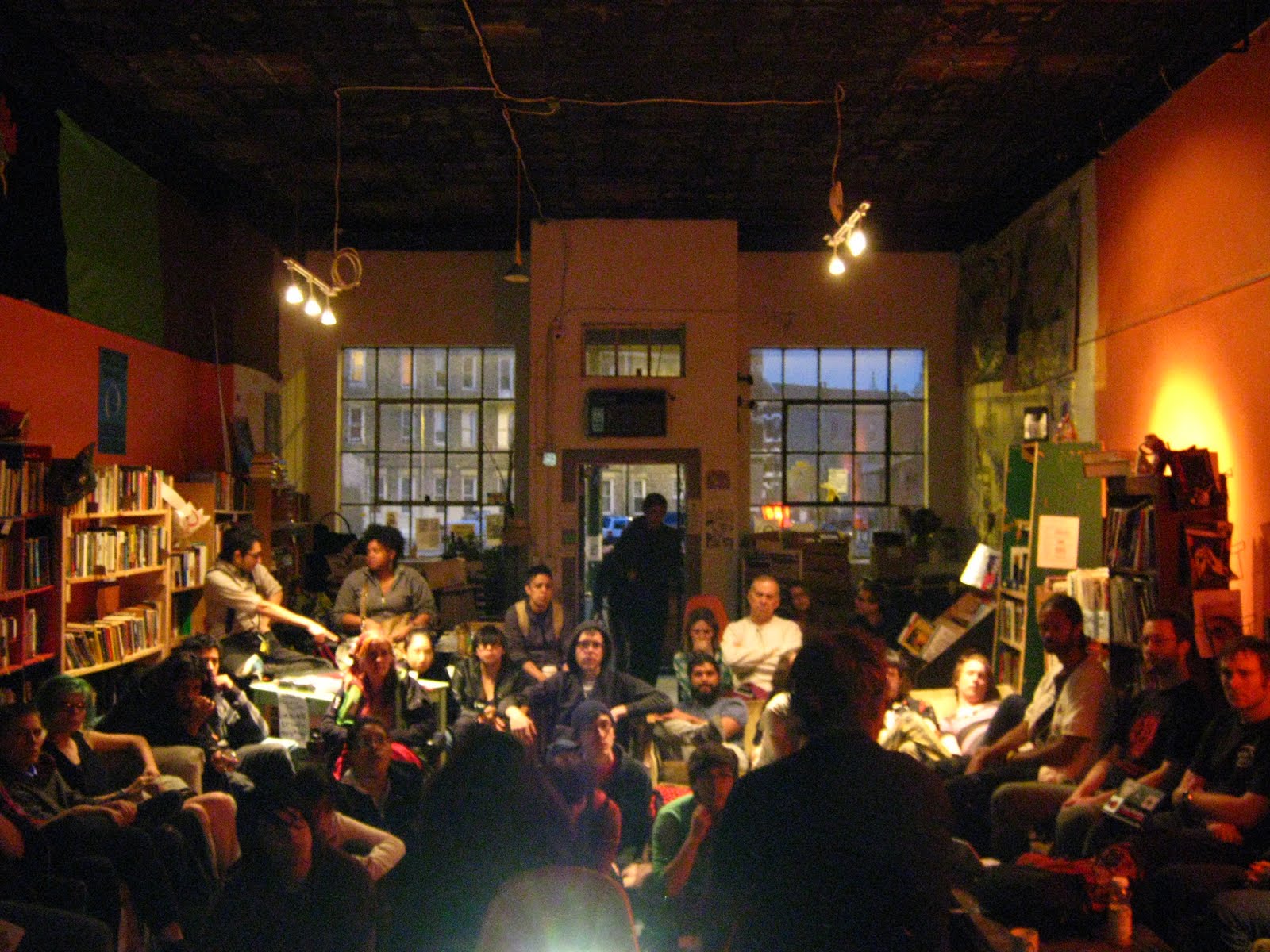 [ http://bibliotecapopularpilsen.wordpress.com/], an infoshop and social centre in Pilsen neighborhood. The talk kept for 4 and a half hour, as all the people were staying and continued asking questions, offering perceptions and creating visions for global emancipation. We met some amazing interesting collectives and people during and after the talk.