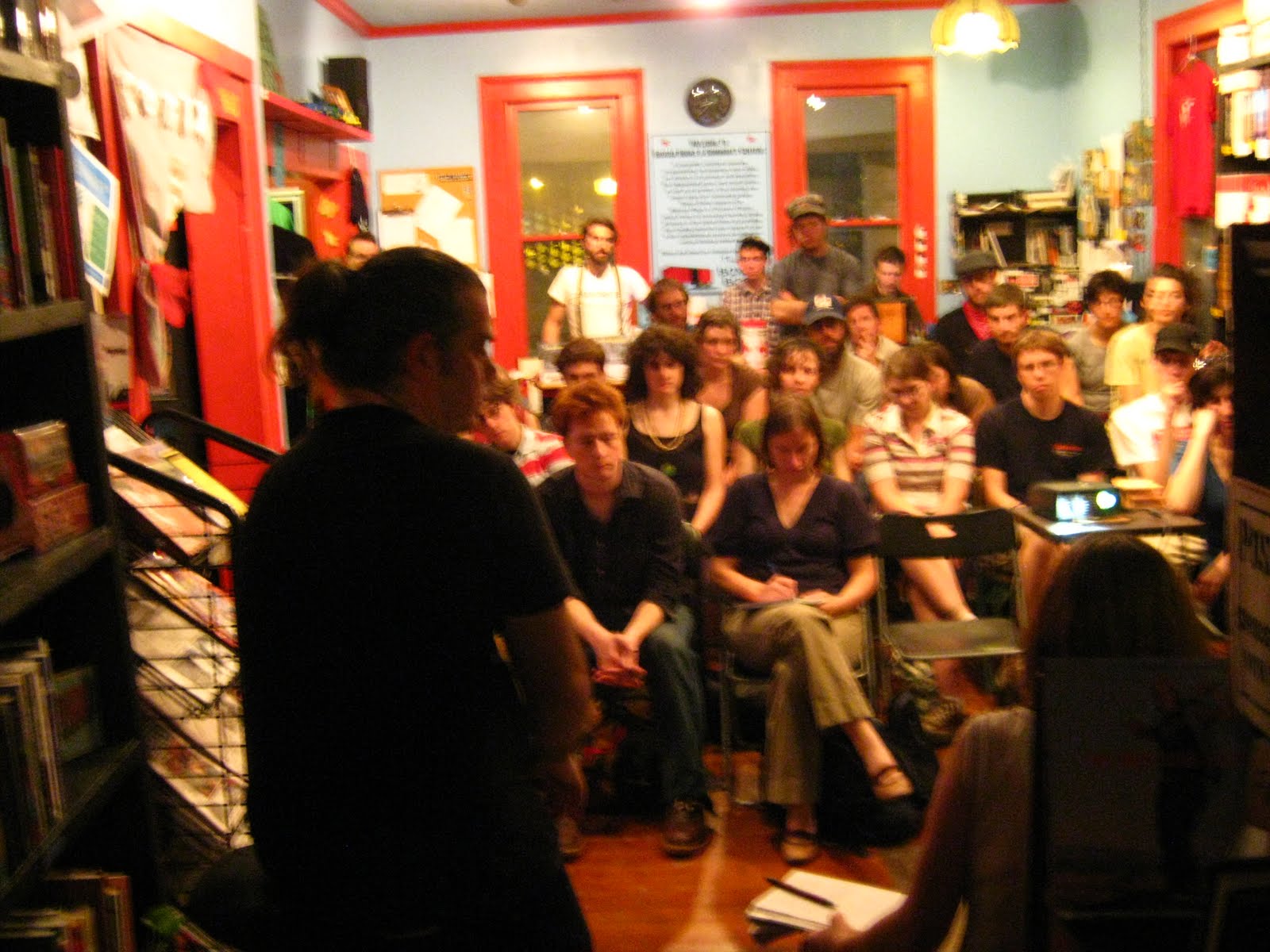 We arrived in Bloomington in a wonderful sunny afternoon… Our talk took place for more than 3 hours in Boxcar Books and Community Center that is a volunteer powered, non-profit organization that exists to provide new and used books, zines, magazines, and comics on topics of social justice, independent media, and fiction for the community