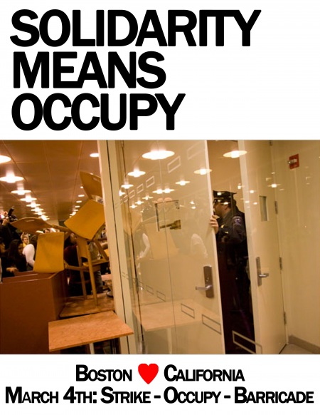 The most explosive and radical element in the movement found itself constantly at odds with these first two elements. The ultra left tendencies of insurrectionary anarchists and communists were quick to push the envelope of struggle in the growing movement and established militant occupations of campus buildings as their primary tactic. These forces, which never established any formal organizations, were composed primarily of radical students, ‘summit hopping’ anarchists, and some faculty and workers. They understood the fight on the campuses to be a front in a larger fight against capitalism and the violent economic restructuring that has followed the major crisis of the neoliberal epoch. They communicated primarily from various communiques released from seized buildings and organized in more clandestine networks of various crews, affinity groups and meetings that stretched across the state.