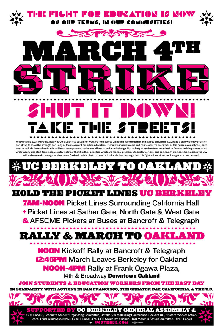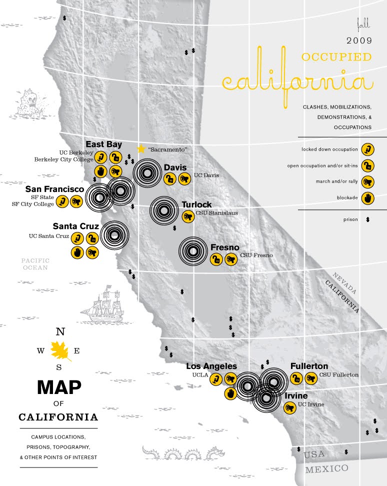 The Education Crisis Movement in California emerged in the summer of 2009 when it became clear that the University of California (UC) system, which encompasses 10 campuses across the state, would be introducing massive austerity measures in the upcoming semesters. These massive tuition increases of 32%, layoffs of unionized workers and cuts in classes and services can all be understood as steps towards the privatization of public education in California. Administrators and state politicians have used the current economic crisis as a cover for implementing these plans for structural adjustment and the further financialization of the university. In this supposed ‘crisis’ they continue to sell bonds to finance massive university construction projects and these bonds are pledged against future tuition increases. This neoliberal scheme of privatization is being implemented on the backs of ever more indebted students and the destruction of organized labor in the education sector.